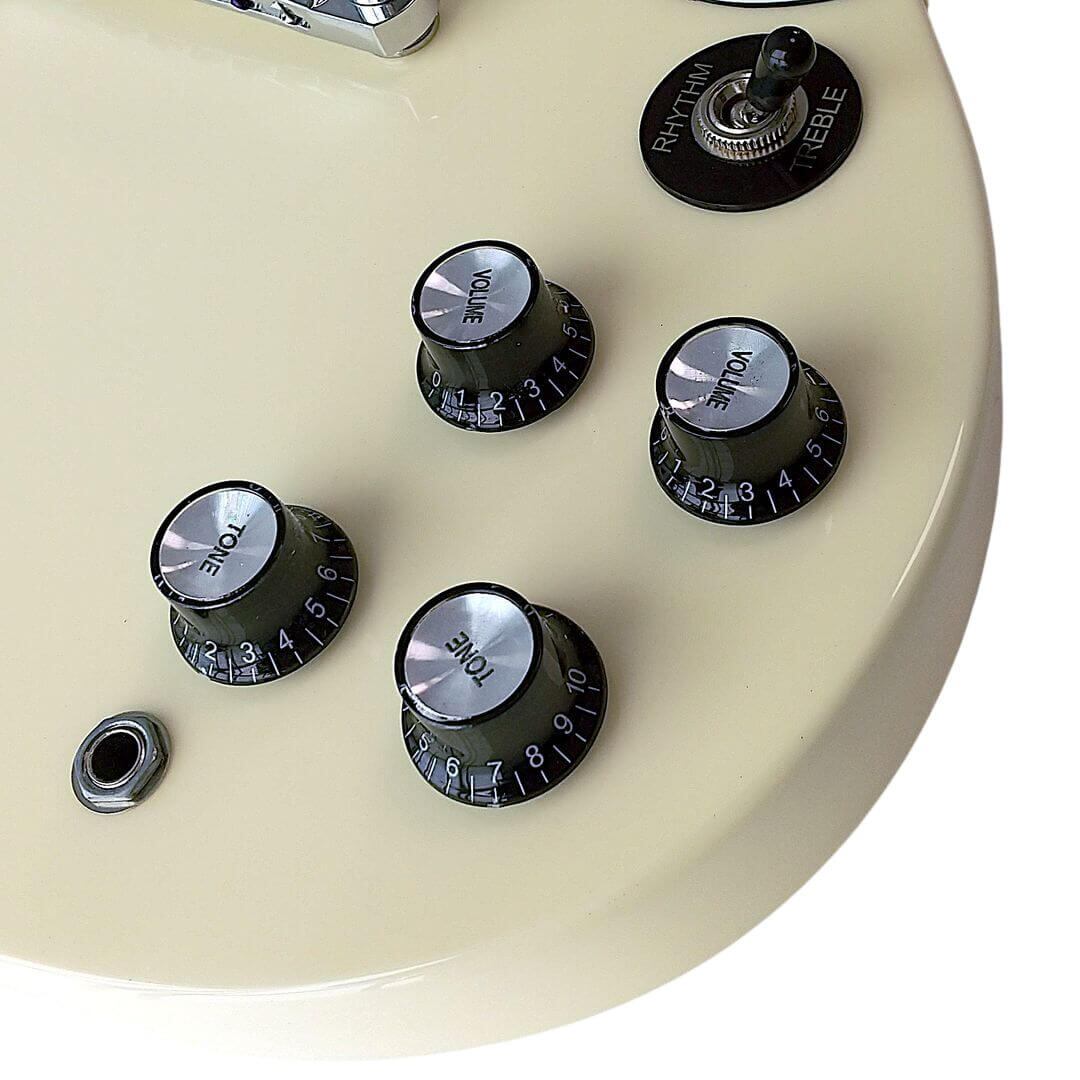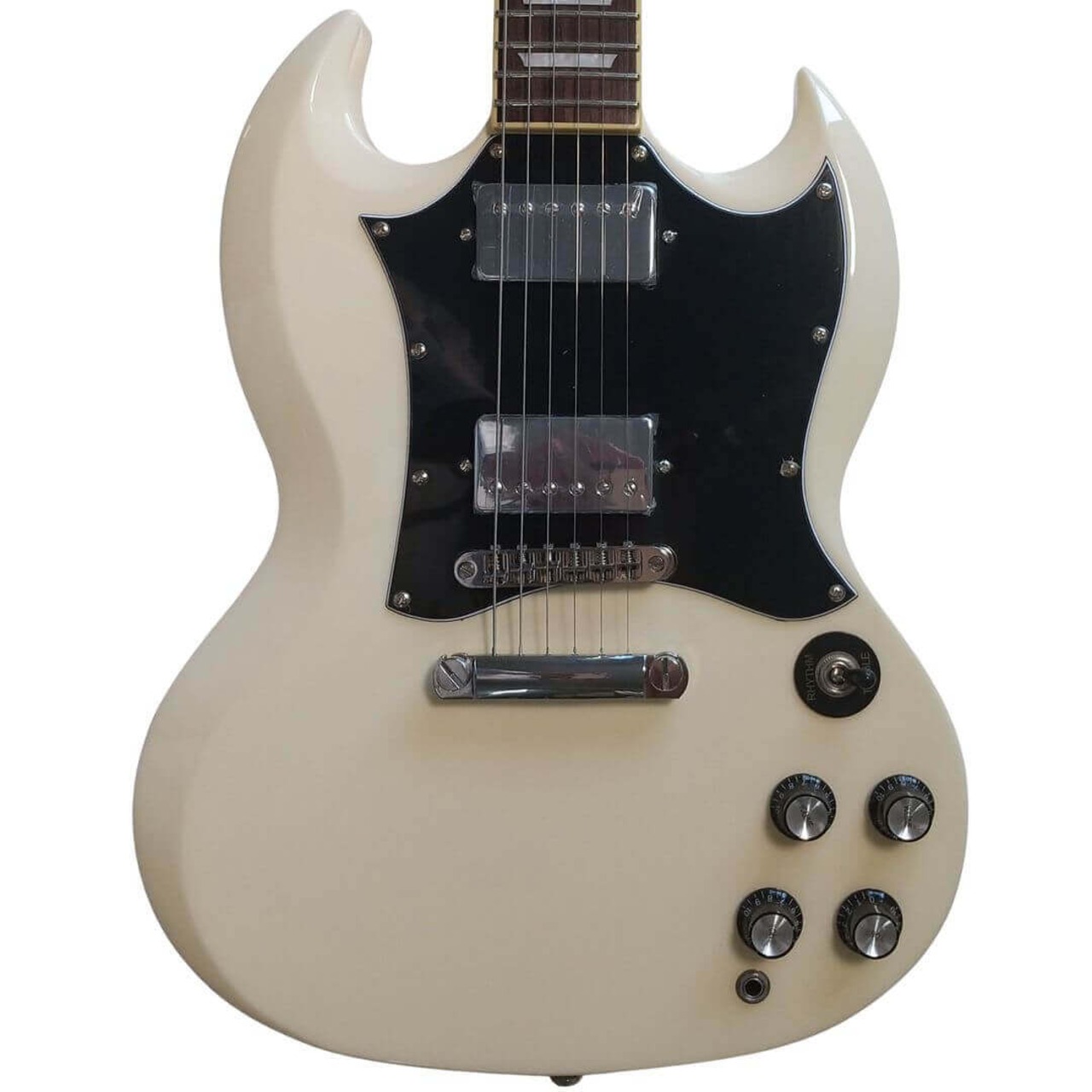 628mmスケールで押さえやすく、コードもリードもスッと手に馴染むので、はじめてのSGタイプにも、2本目のサブギターにもおすすめ。白系カラーはステージでも映えるし、シンプルにカッコいいです。
