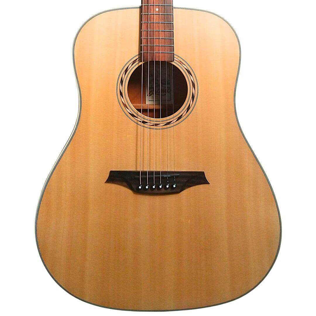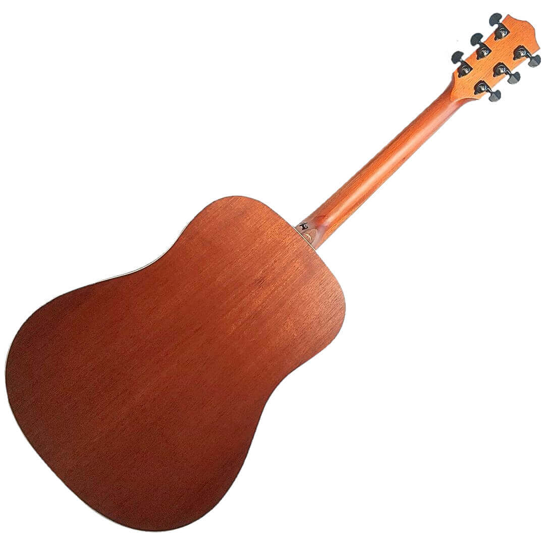 ボディは王道のドレッドノートで、ストロークするとしっかり前に出る音量感と、気持ちいい低音が出やすいタイプです。