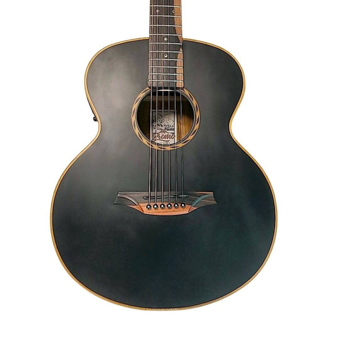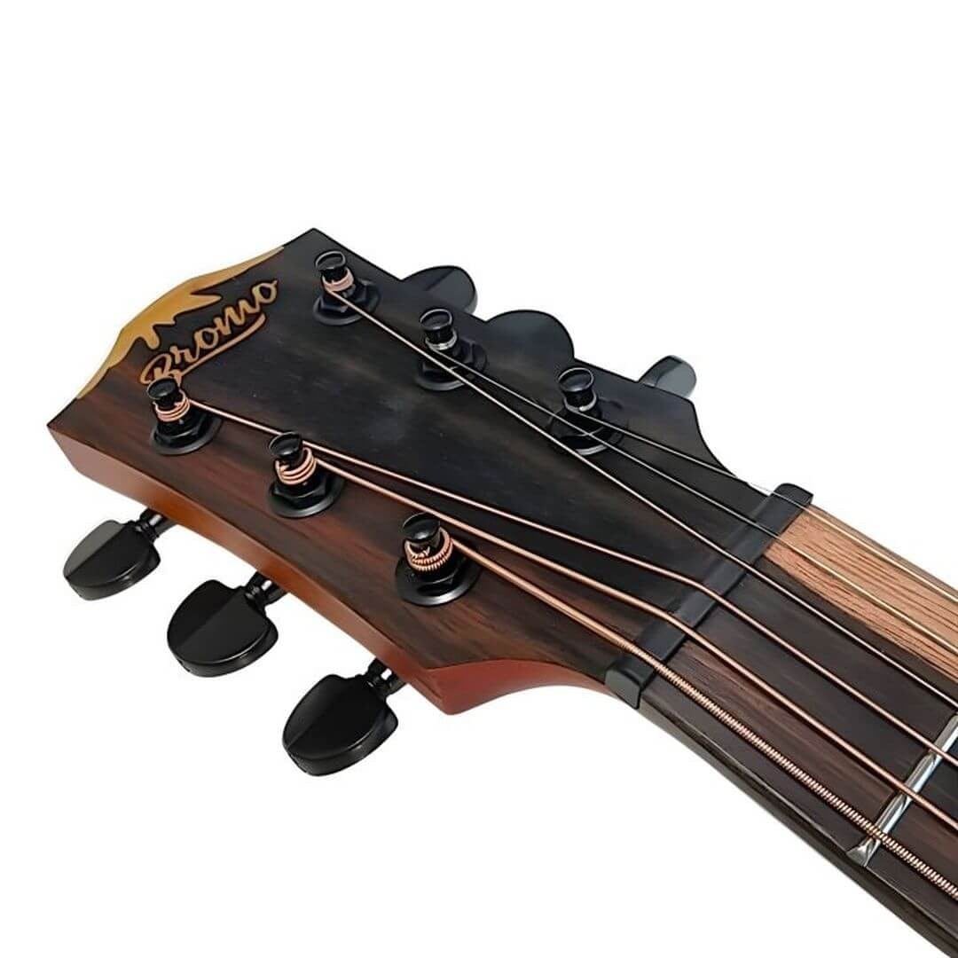 指板には「イーグルアイ」と呼ばれるアバロン貝のインレイ、ブリッジとヘッドにはMt. Bromoのロゴをデザインしたメープル装飾を採用。2トーンのアマラ・エボニー指板とブリッジが、高級感ある見た目と豊かなサステインを両立。Nubone XB製のナットとサドルが音の伝達効率を高め、20本のジャンボフレットはベンディングもスムーズにこなします。
