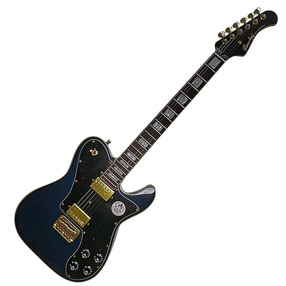 本格的なTLスタイルに、ローステッドメイプルネックとハムバッカーの迫力を融合させたBTLC-1-RSM/R。深みのある「ダークレイクプラシッドブルー」のボディに、ゴールドパーツが優雅に輝く、見た目もサウンドも妥協しない一本です。