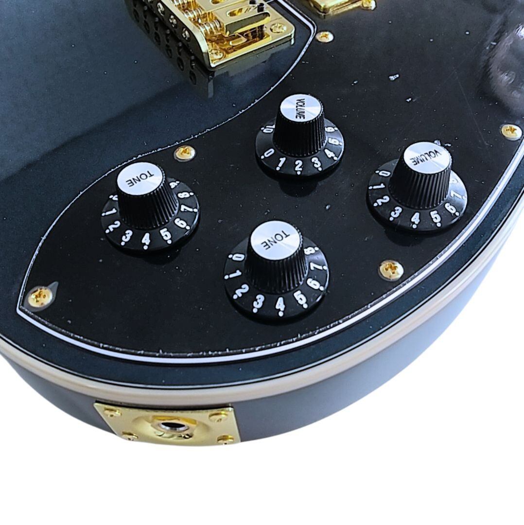 フロントとリアに搭載されたカバードタイプのオリジナルハムバッカーは、オープンタイプとは異なる角の取れたニュアンスが魅力。ハイゲインでも耳に優しく、クリーンではメロウなサステインを響かせます。2Vol/2Toneの独立コントロールで、細かなトーンセッティングも自由自在。