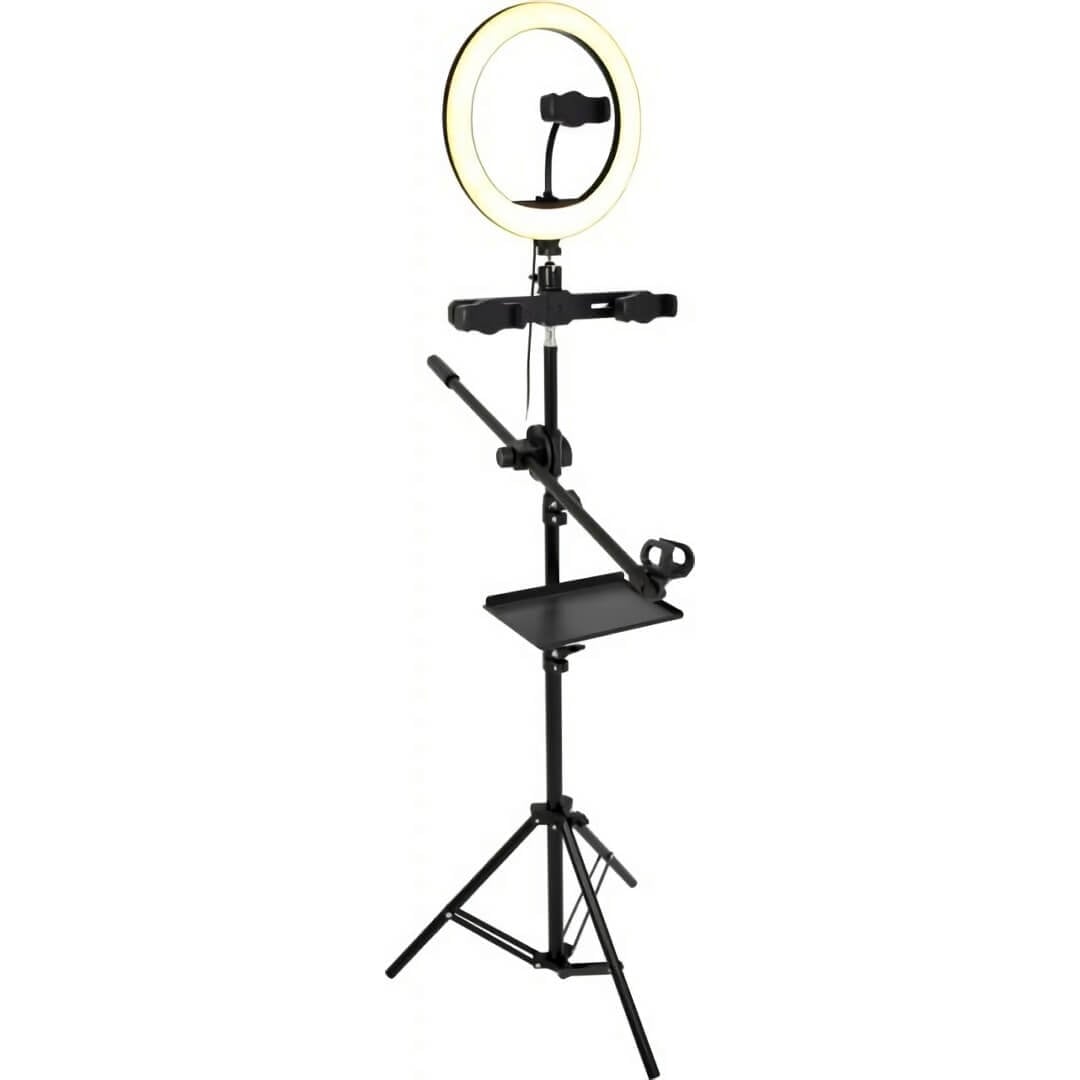 内容:リングライト(有線リモコン付き)、マイクアームホルダー、スマートフォンホルダー、マルチトレイ
